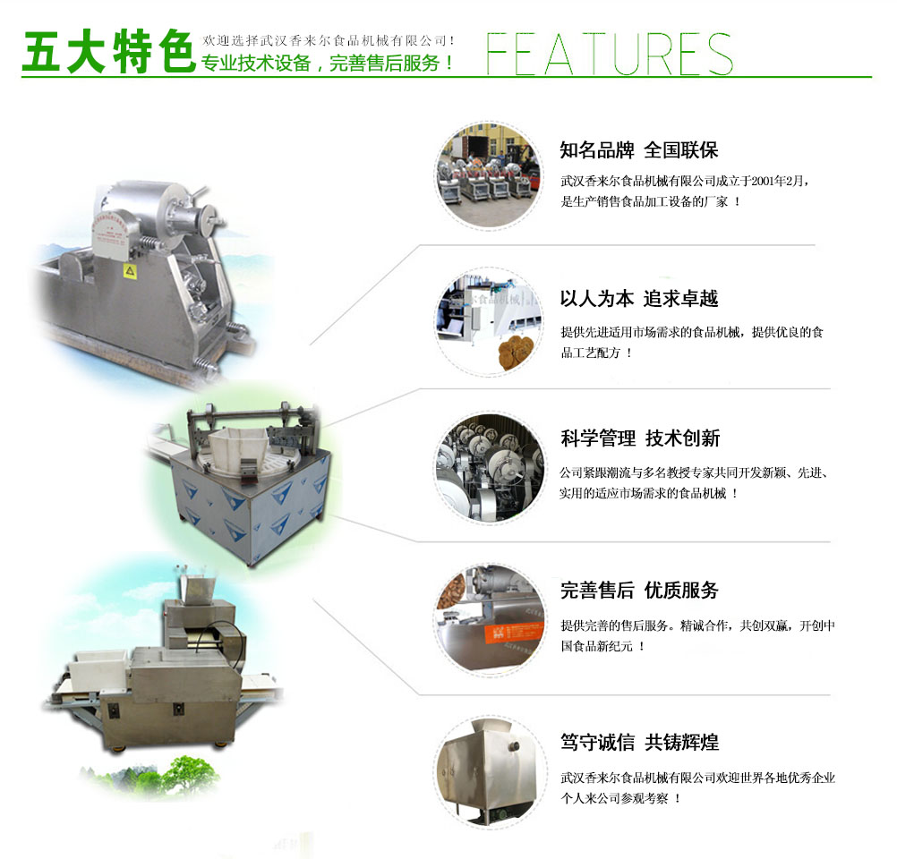 武漢香來爾食品機(jī)械有限公司成立于2001年2月,是生產(chǎn)銷售休閑食品加工設(shè)備的廠家。公司緊跟市場潮流與華工、華農(nóng)多名共同開發(fā)新穎、實(shí)用的適應(yīng)市場需求的食品機(jī)械,自有車、刨、鉆、銑、剪板、折彎等先l進(jìn)機(jī)床100多臺(tái) 套。7年誠信通會(huì)員,產(chǎn)品出口拉美、非洲、東南亞、歐洲等很多國家和地區(qū),國內(nèi)很多食品企業(yè)都是我們的合作伙伴。目前公司專門設(shè)立一個(gè)的售后 服務(wù)班子,在公司逐步發(fā)展強(qiáng)大的過程中,一直堅(jiān)持售后服務(wù)的同步發(fā)展,精良的食品設(shè)...